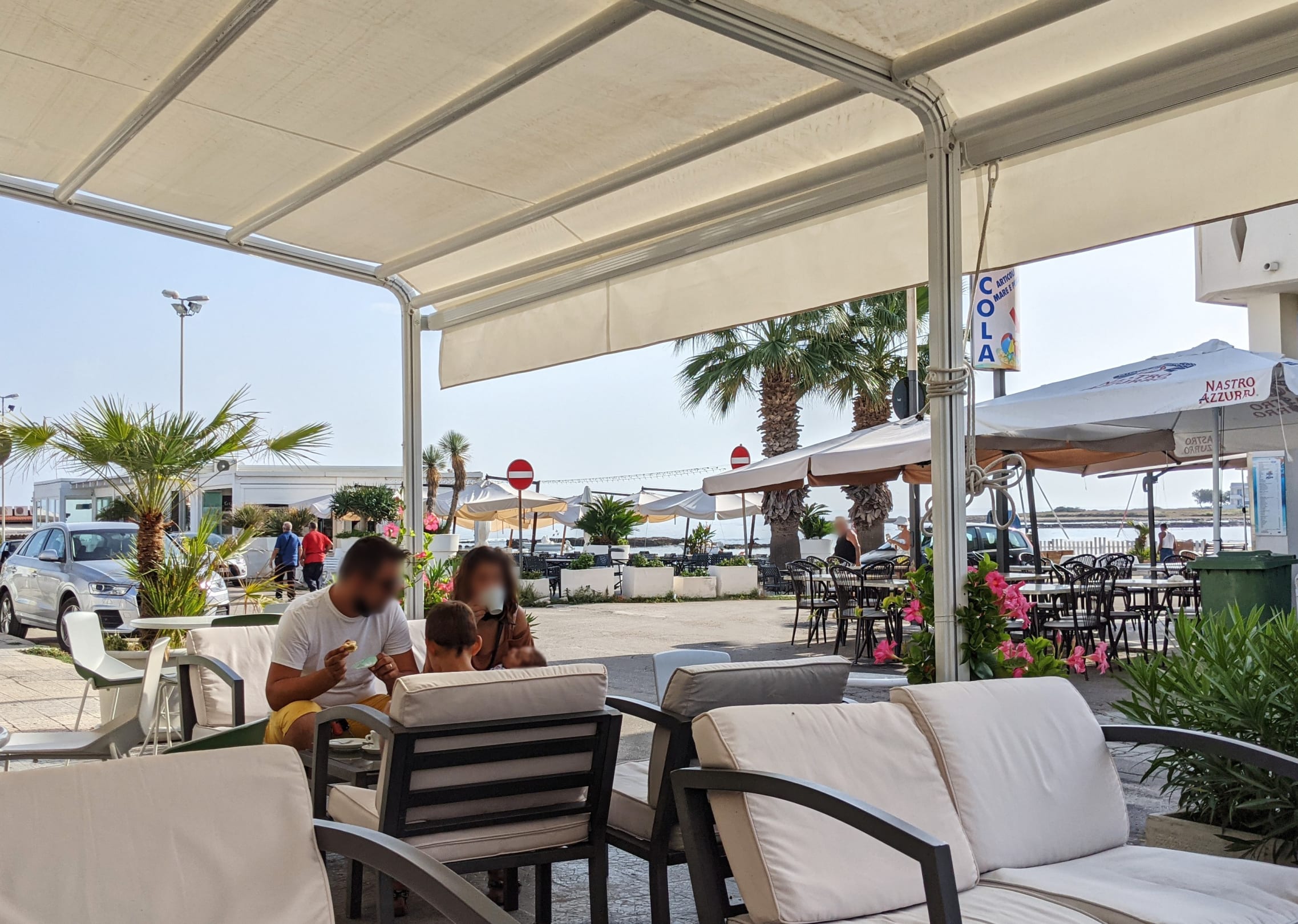 Außenbereich der Bar / des Restaurants und Frühstücksbereichs.