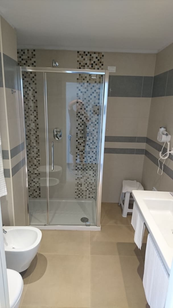 modernes, geräumiges, sauberes Badezimmer. So erwartet man es sich!