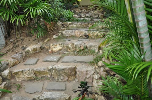 Unbequeme Treppe zum Pool und Meer