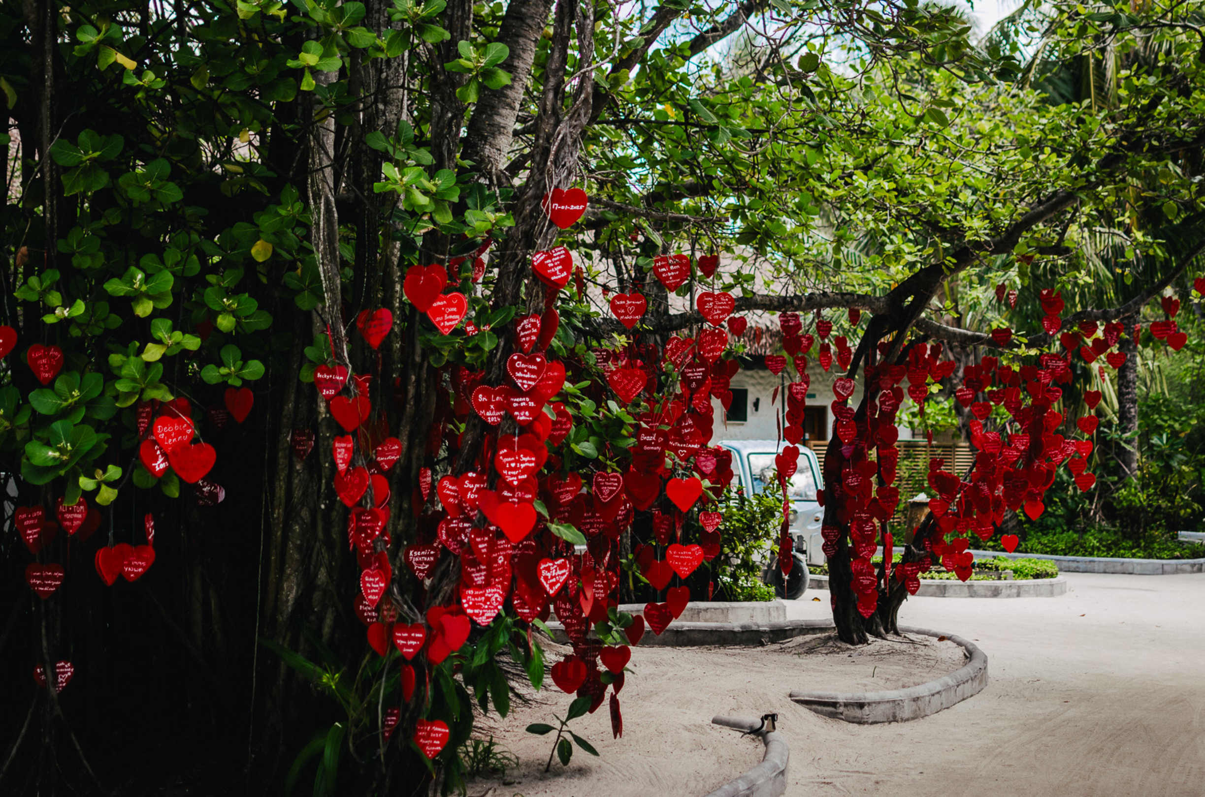 Hier kann man sich für 10$ ein Herz kaufen, beschriften und aufhängen.