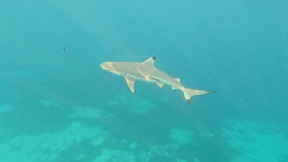 Schwarzflossenhai beim schnorcheln