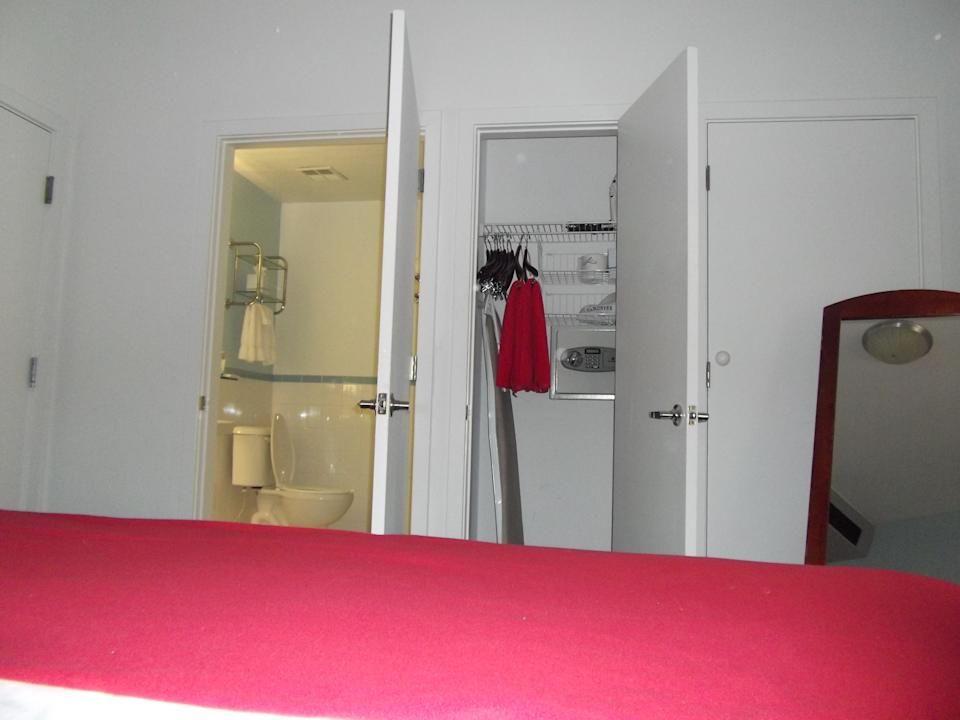 Zimmer 116, Blick vom Bett auf Bad und Schrank