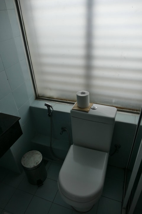 Toilette und verrostete Fensterrahmen