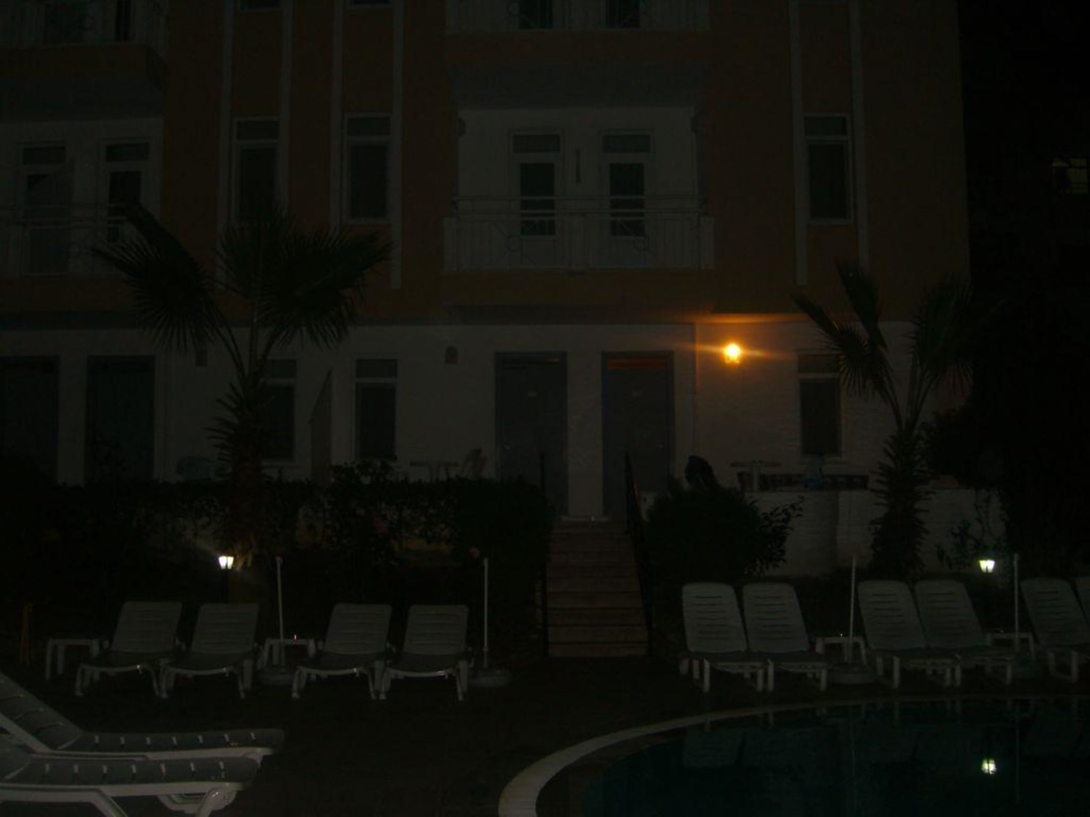 Außenansicht von unserem Zimmer auf das HaupthausDiesen Blick haben wir allabendlich genoßen, wenn wir auf unserem schnuckeligen Balkon saßen.