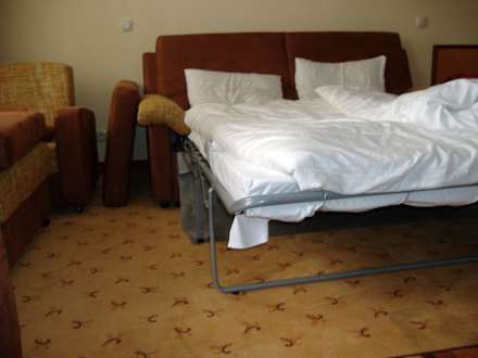 Dies ist das 3. und 4 Bett bei Buchung eines 4-Bett Apartments im 4 Sterne City-Hotel in Budapest. Ncihts für Gäste mit Rückenproblemen.