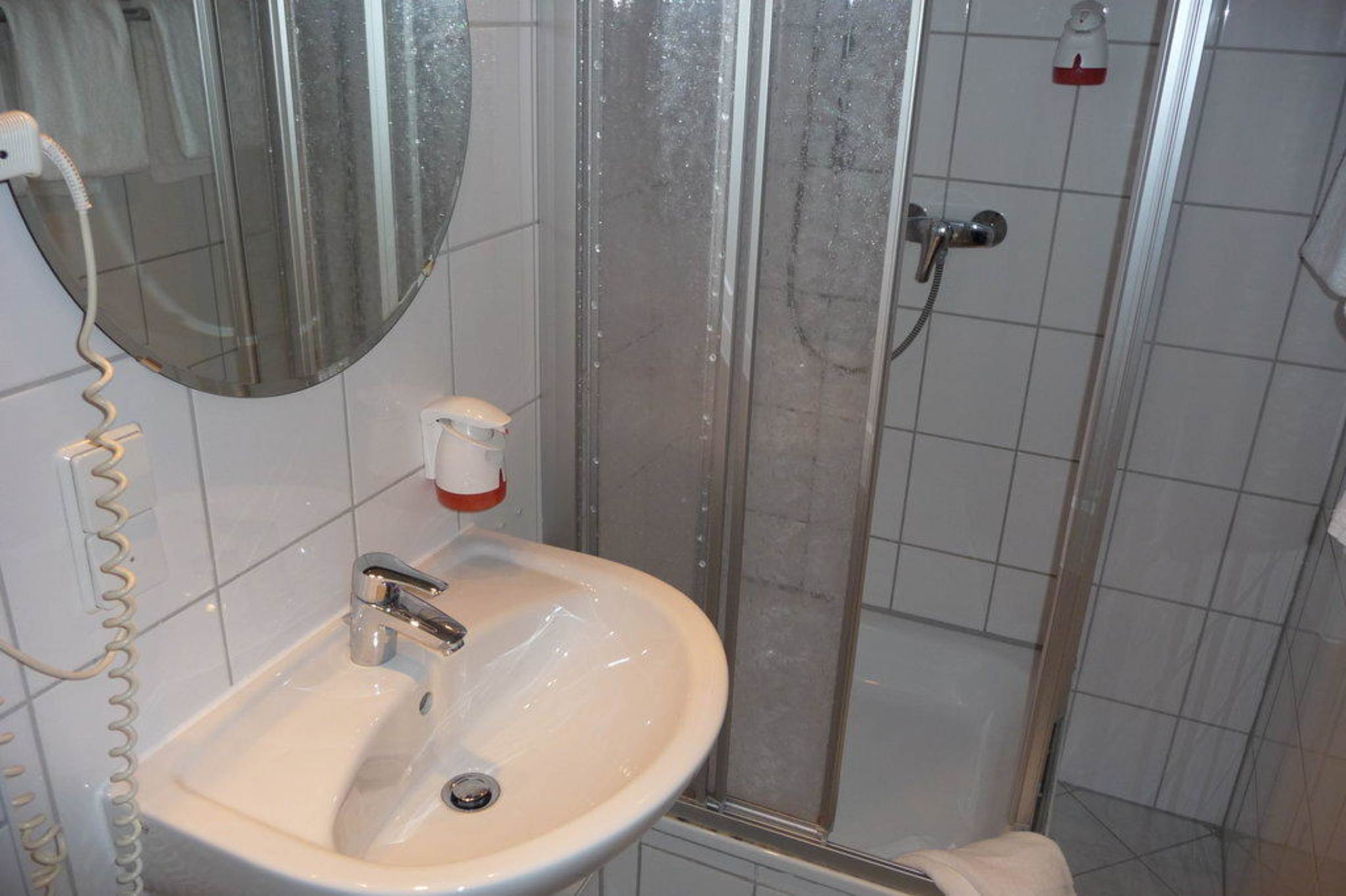 Waschbecken und Dusche Zimmer 444
