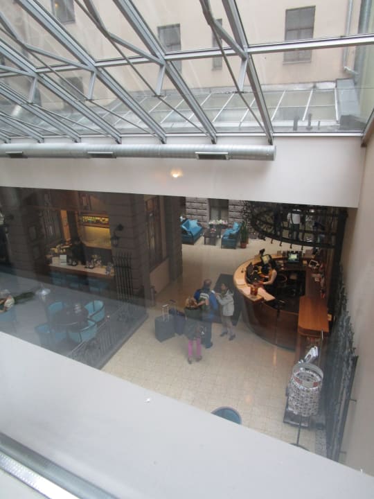Aus dem Zimmerfenster direkt in die Rezeption zu blicken - der Lärm kommt bei offenem Fenster ins Zimmer, bei geschlossenem hört man aber Stühlerücken u.ä.