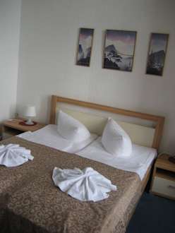 Doppelbett mit Handtuchblumen