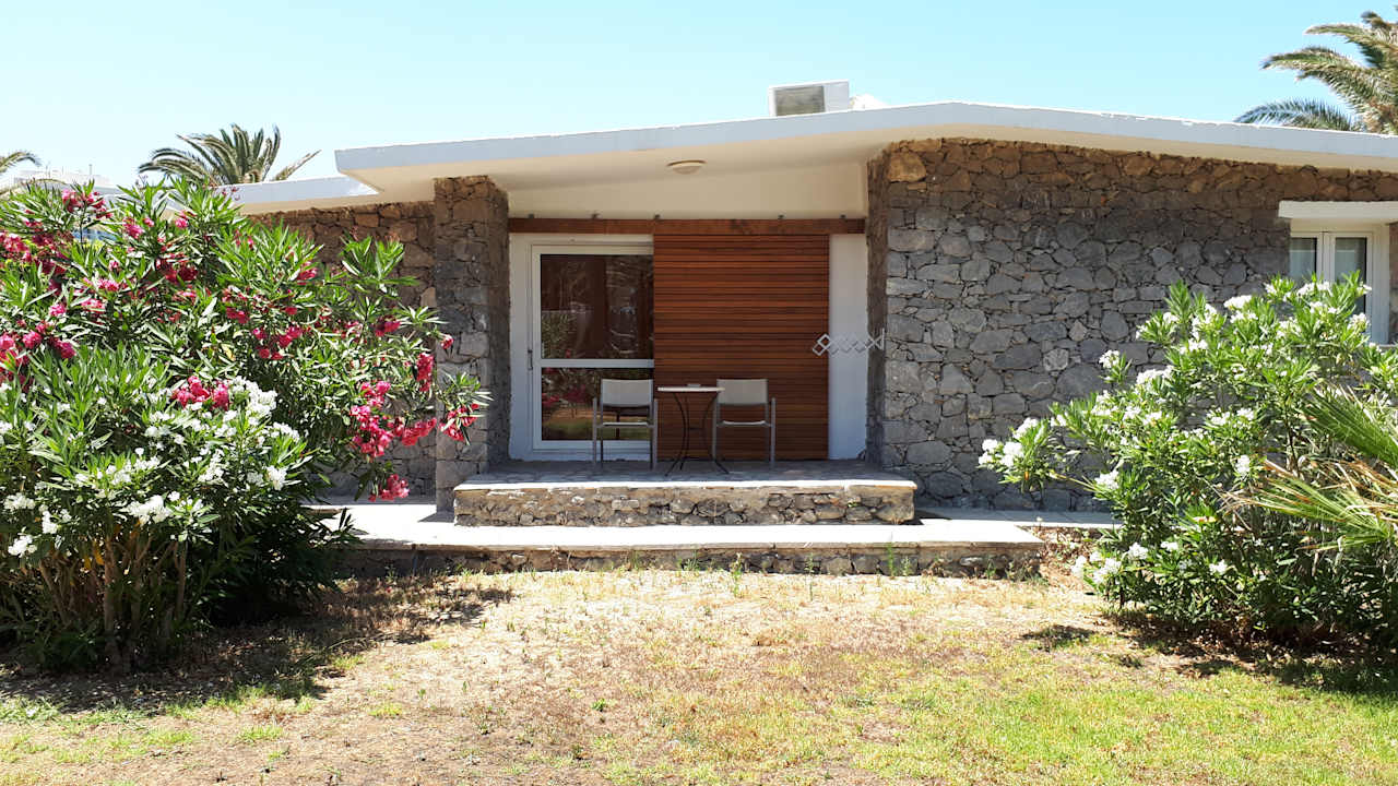 Unterkunft im Bungalow mit Gartenblick