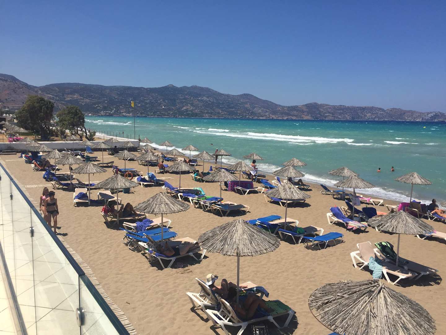 Ausblick von der Terrasse auf den Sandstrand