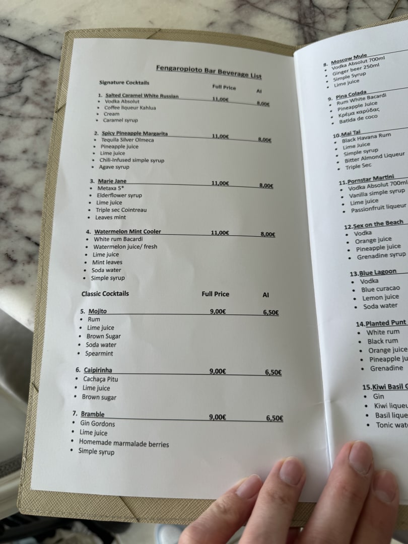 Getränkekarte mit Aufpreisen für AI