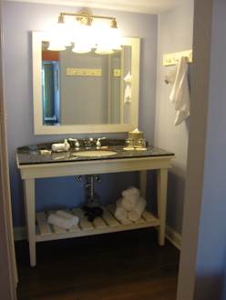 Links geht es in den separaten Raum mit WC und Dus