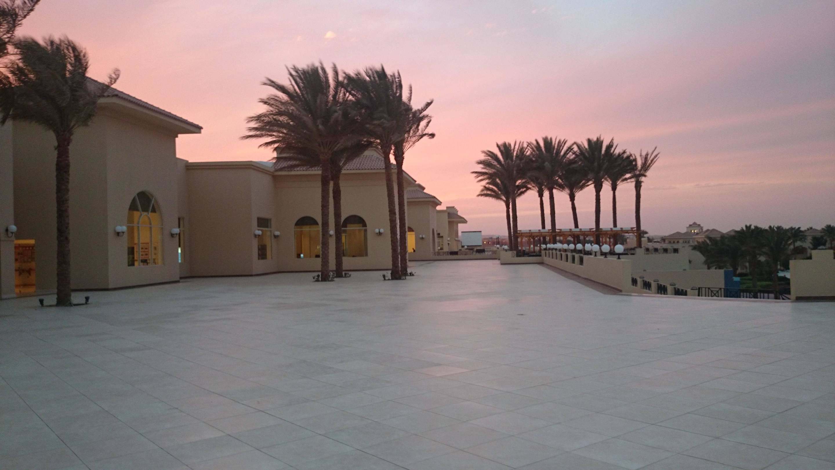 Vor dem Hauptgebäude mit Lobby, Restaurant
