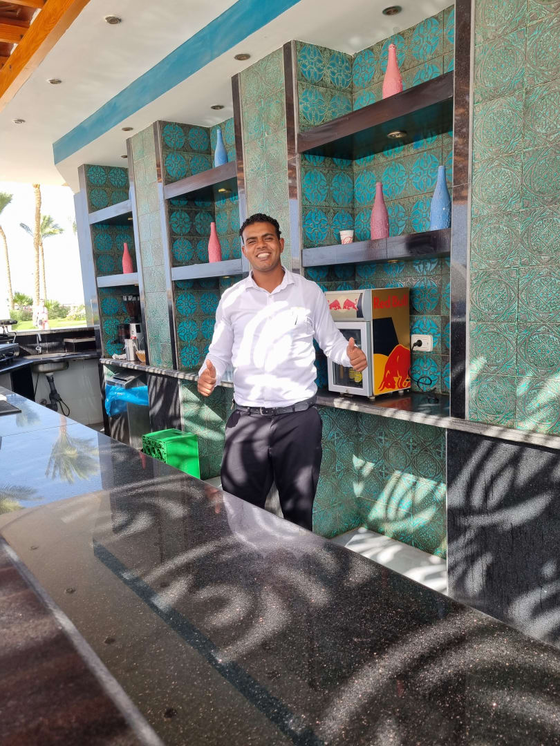 Ahmed Hagag von der Halvwaybar ist besonders durch seine Freundlichkeit, Aufmerksamkeit und Feis hervorzuheben und er liest den Gästen jeden Wunsch von den Augen ab.Wir freuen uns immer in wiederzusehen. Danke Ahmed