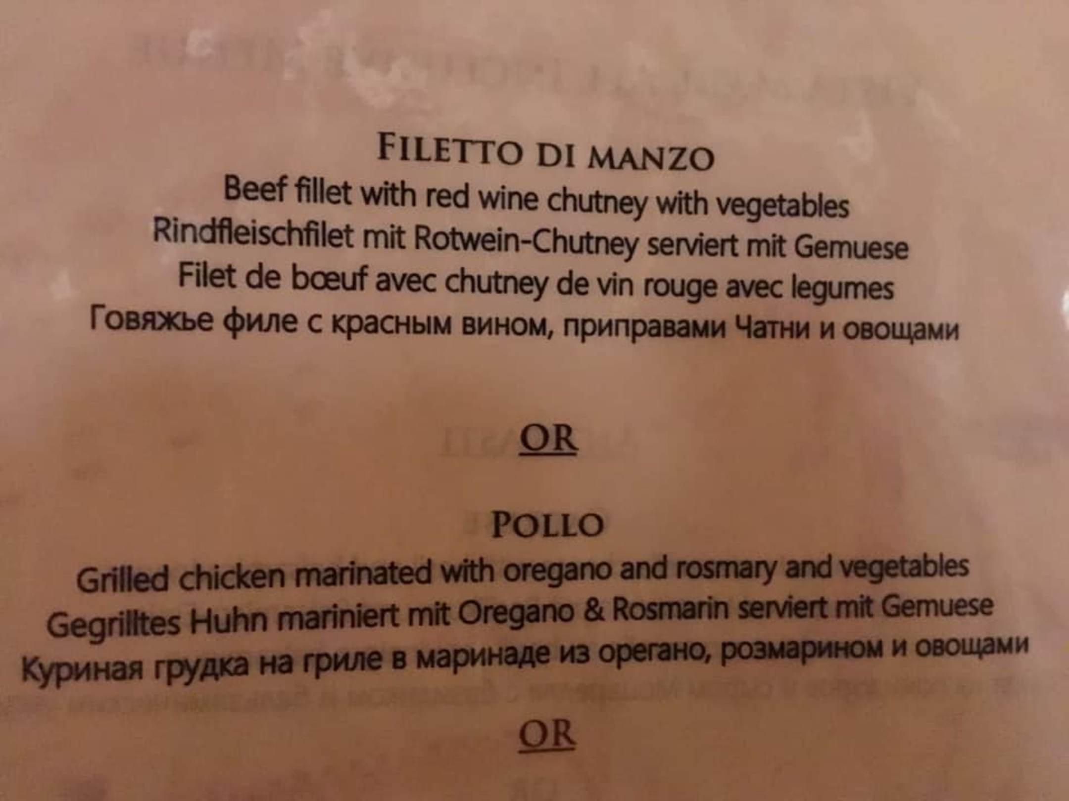 Menükarte des italienischen Restaurants Teil 1
