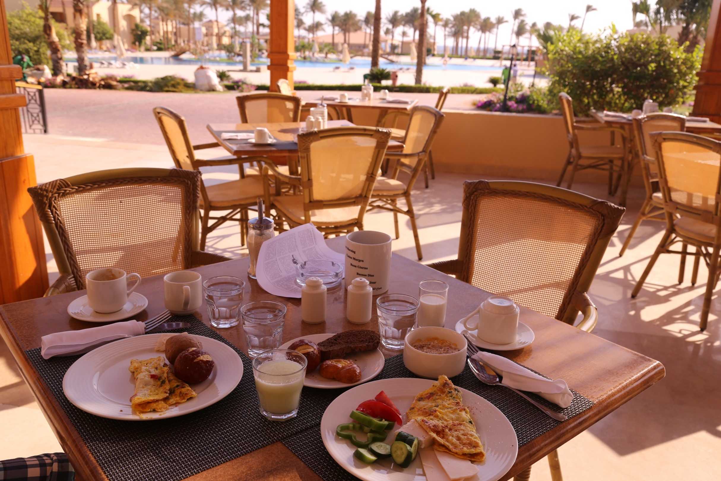 Frühstück in schöner Kulisse mit Blick auf den Pool