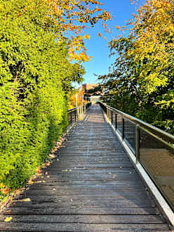 Weg zum Aufzug, der hinunter an den Strand fährt. Eine Treppe ist natürlich auch vorhanden.