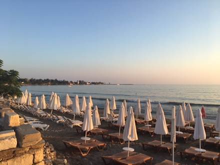 StrandStrandliegen am flach abfallenden sehr schönen Strand