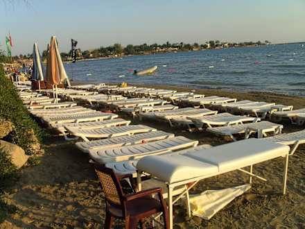 Die hoteleigenen Strandliegen ohne Gäste