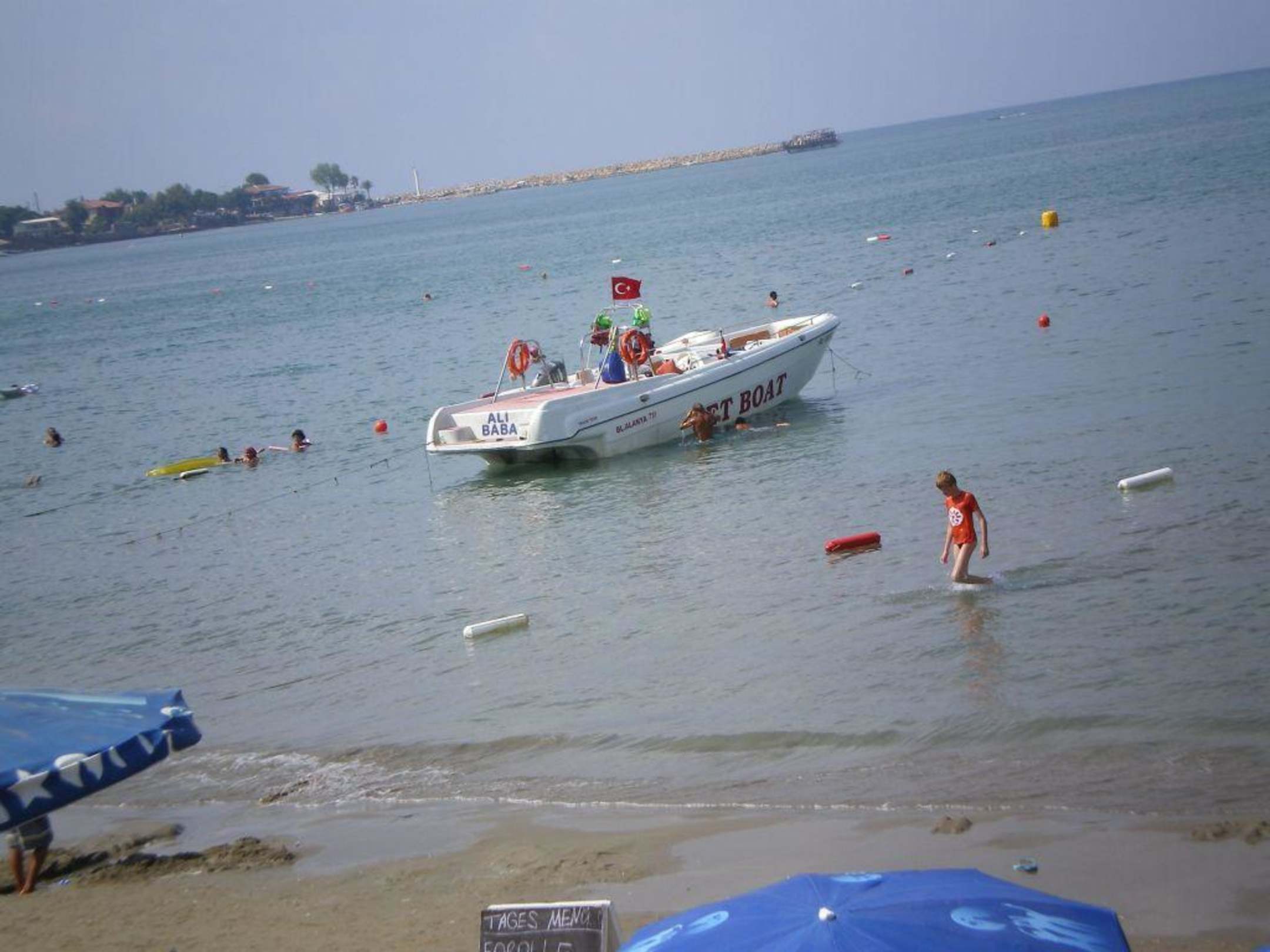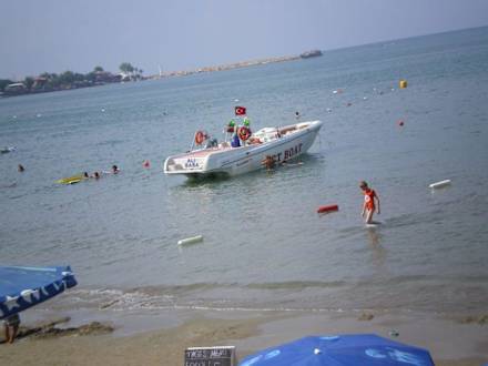 SchwimmarealDas abgesperrte Gebiet für Schwimmer, Kinder, Taucher etc. ist schon nicht wirklich riesig, aber hier wurde wohl der Strandabschnitt noch durch eine Untervermietung (anzunehmenderweise) verkleinert...es lagen teilweise auch noch Speedboote im Wasser...auslaufendes Benzin/öl haben wir nicht gesehen, das will aber nichts heißen...