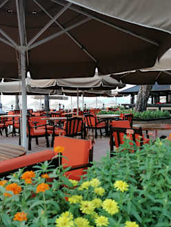 Terrasse mit Pool und Strandbar