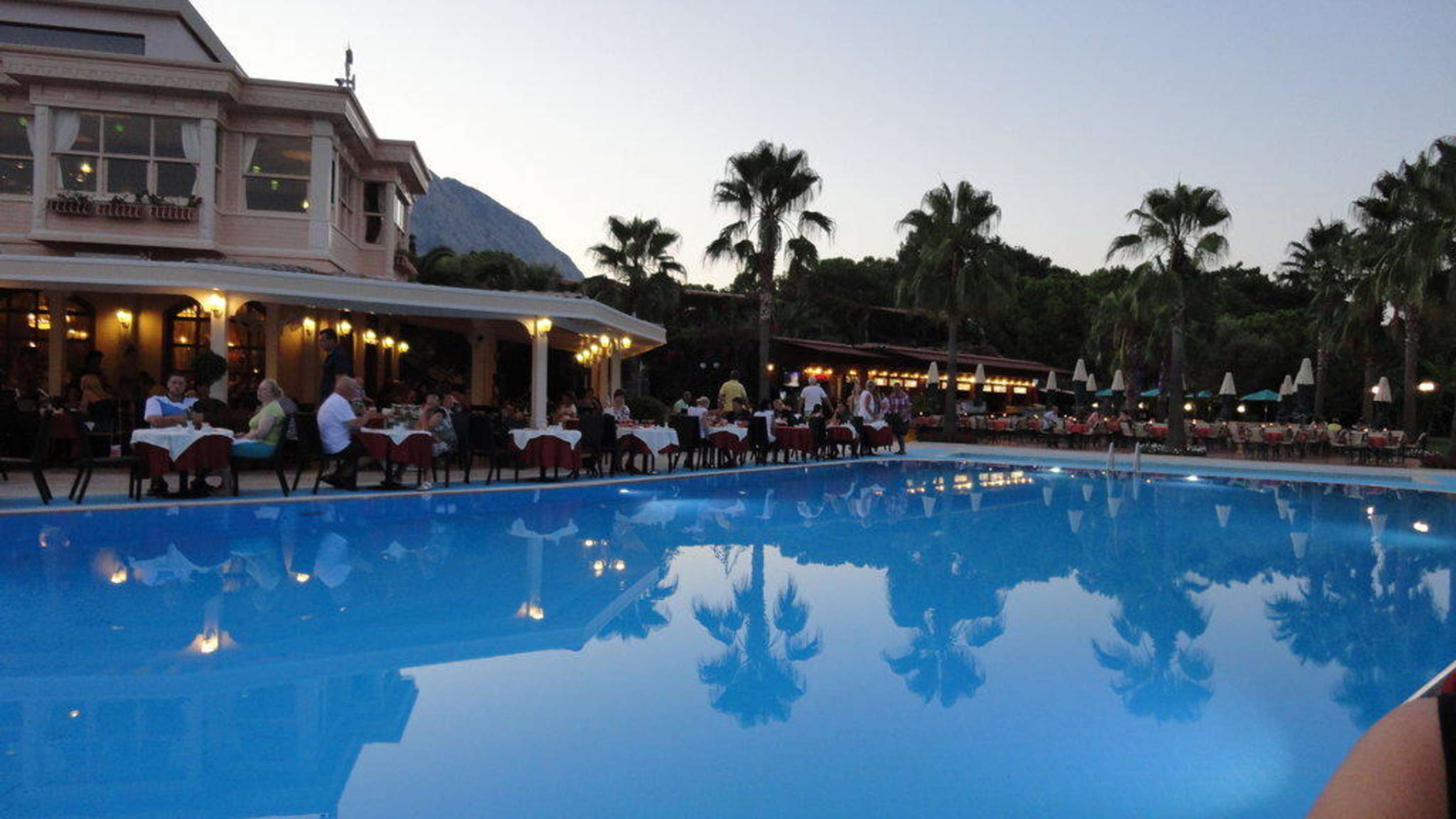 Pool beim Abendessen