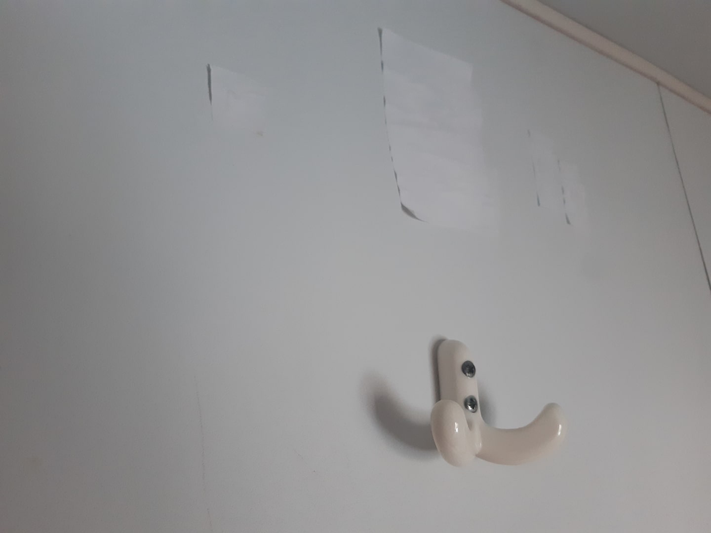 Löcher in der Wand zugeklebt. Handtuchhalter, Toilettenpapierhalter fehlt.