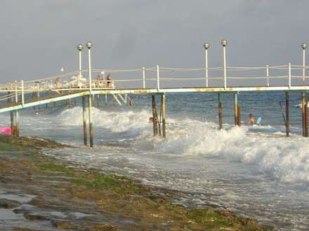 Leider kein guter Zugang zum Meer wegen den Felsplatten am Strand