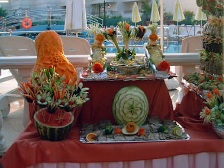 AbendessenMeistens Dienstag ist Türkischer Abend! Da haben die Angestellten das Abendessen auch draußen hingestellt und wunderschön dekoriet!!!