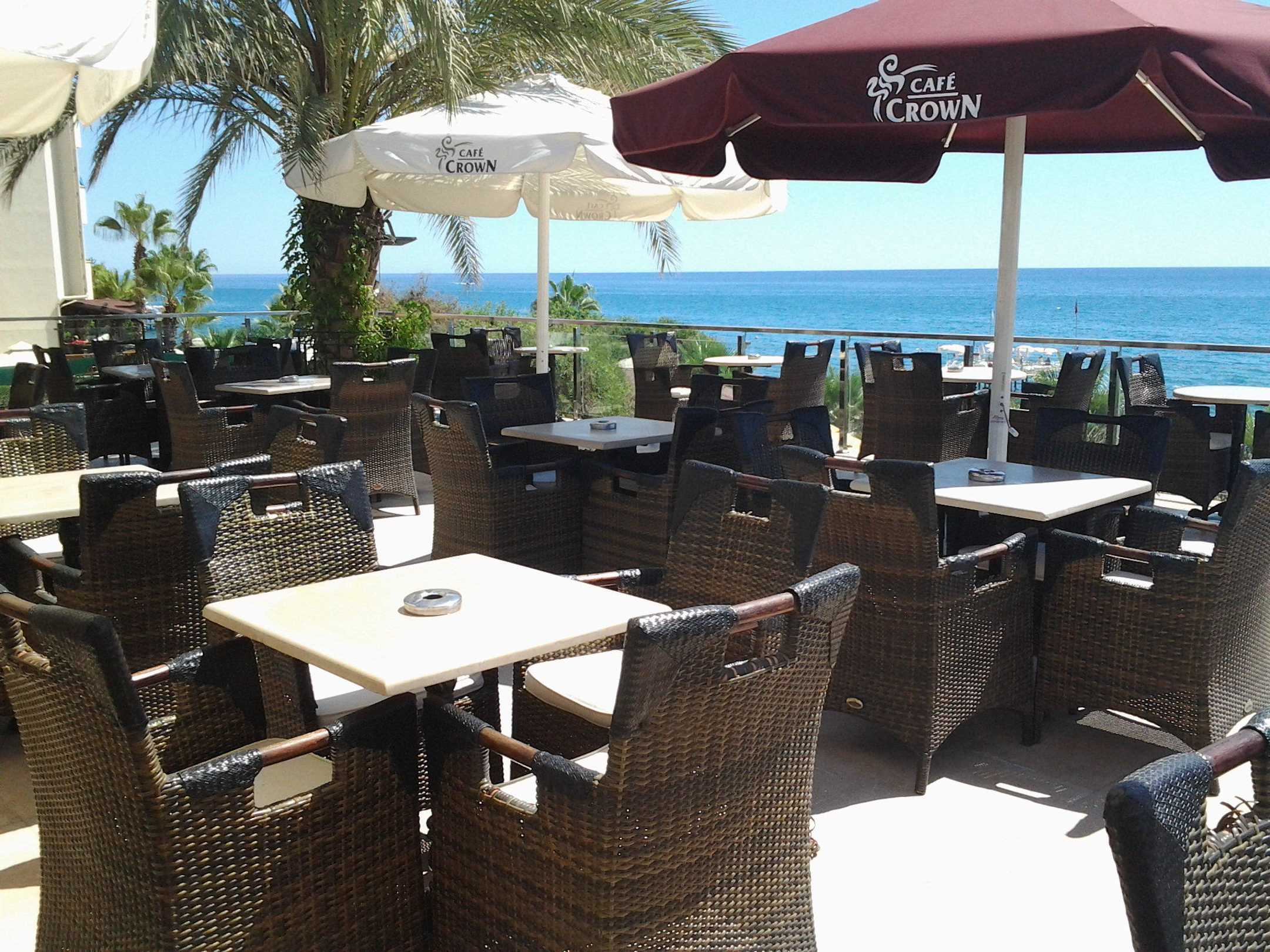 Dachterrasse mit Blick auf den Strand und das Meer