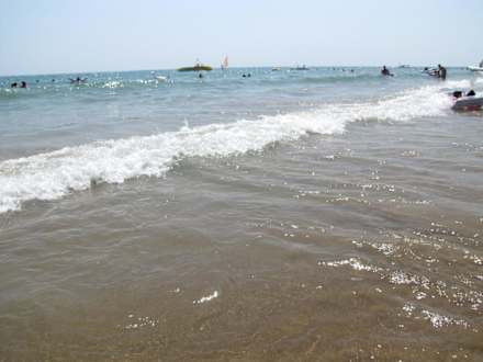 Vom Strand geht es ganz flach ins Meer, man kann noch sehr lange stehen. Die Wellen machten viel Spaß :)
