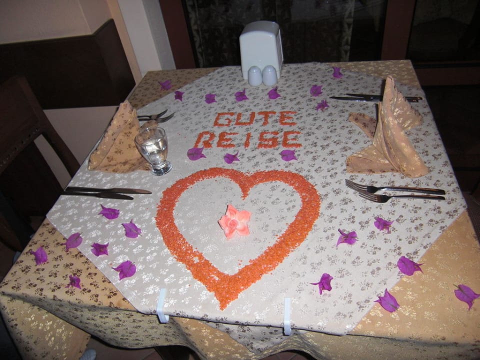 Unser Tisch am Abend vor der Abreise