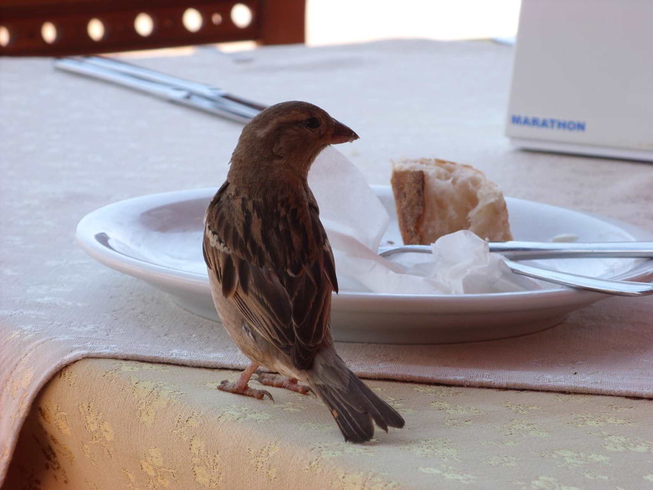 ..kleiner Spatz als Brötchen-Dieb!!