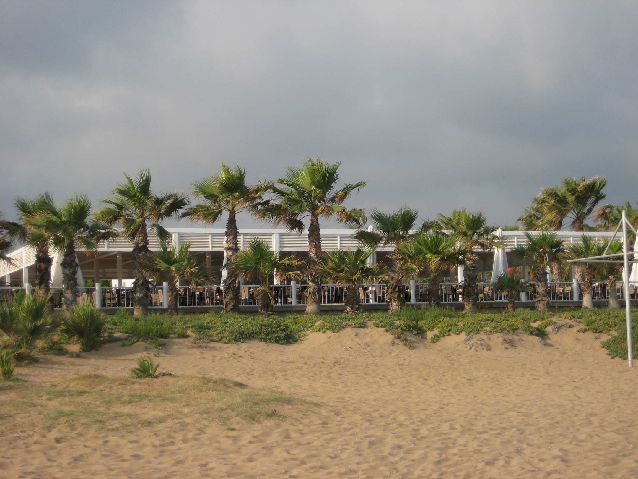 Blick vom Meer auf das Strandrestaurant