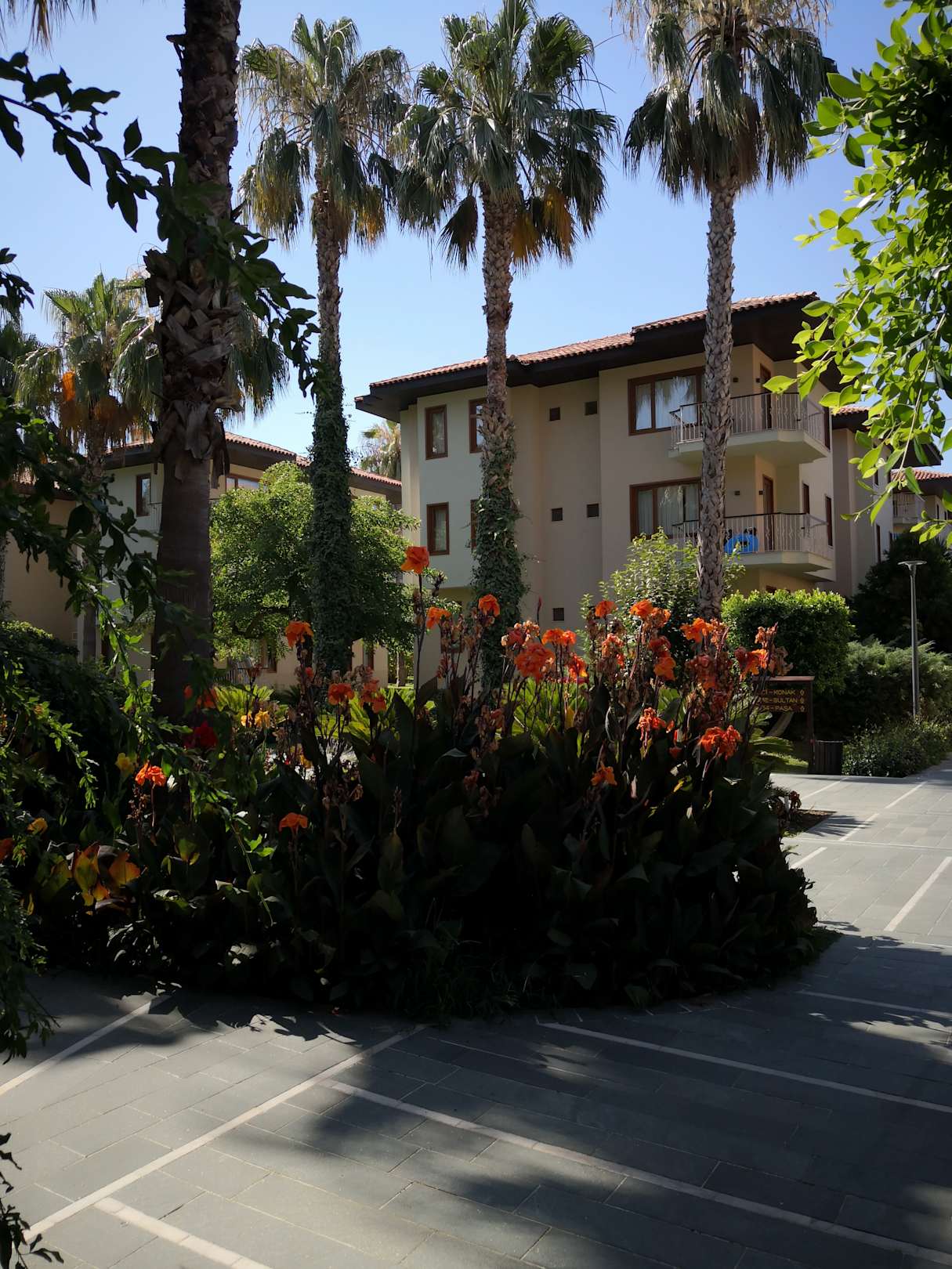 Hotel Außenanlage mit Blick auf eines der vielen Appartmenthäuser der Hotel Anlage.