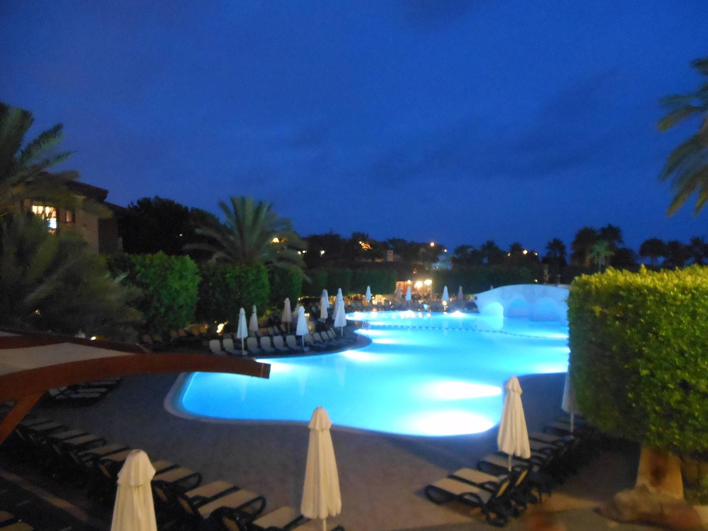 Poolanlage am Abend
