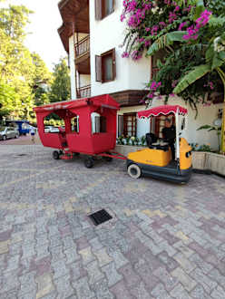Hoteleingang, man braucht nicht zu laufen, man wird zum Zimmer gefahren
