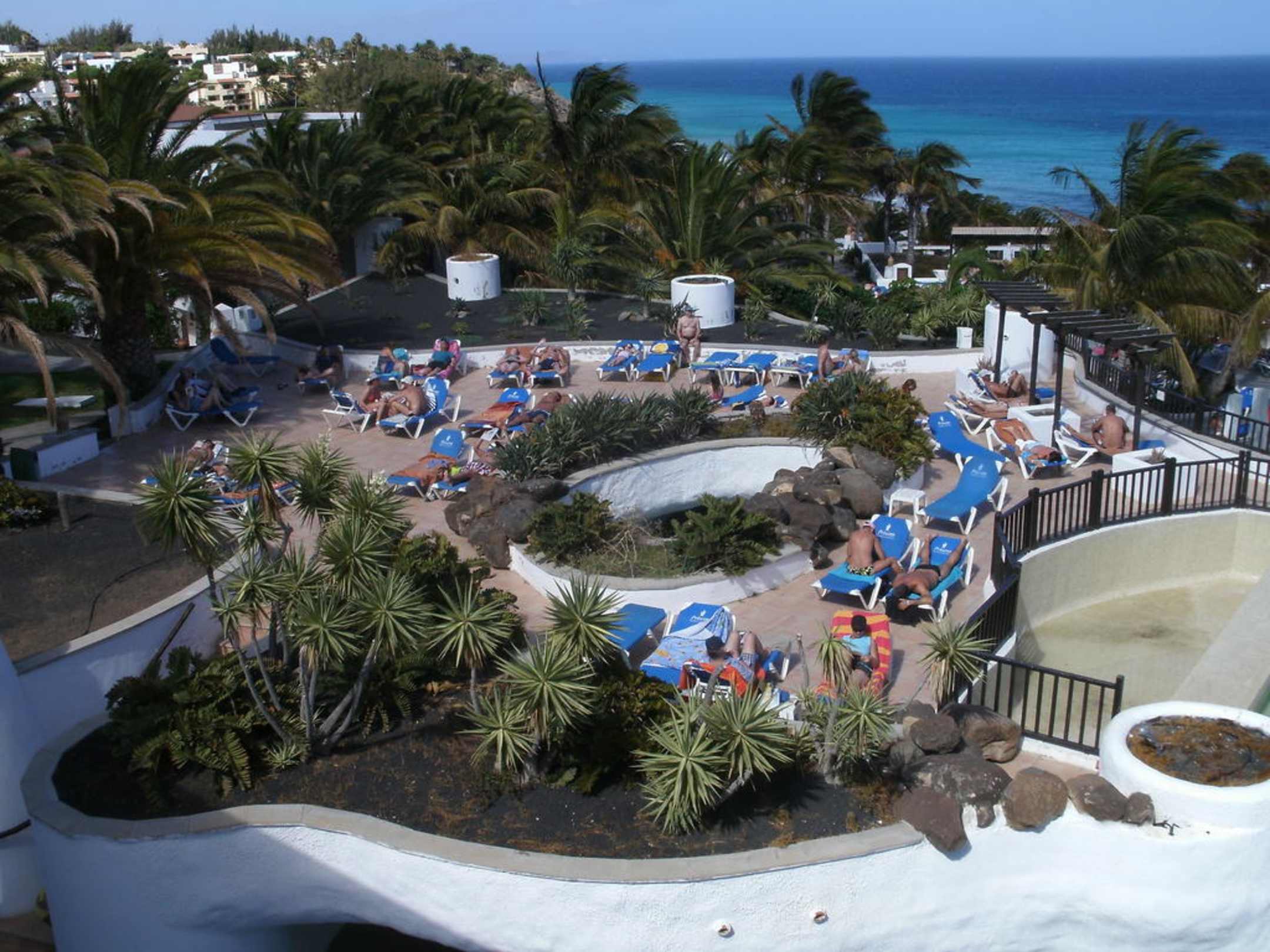 Terrasse beim WasserfallBlick auf die Terasse beim Wasserfall. Dort konnt man ab 17.00 Uhr gut liegen. Der Rest war dann meist schon zu kalt.