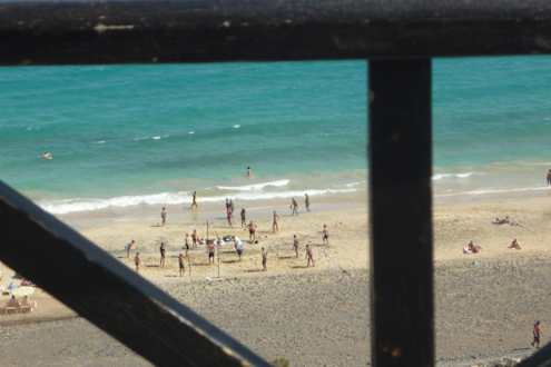 Ausblick vom Snackrestaurant auf das Beachvolleyball-Feld