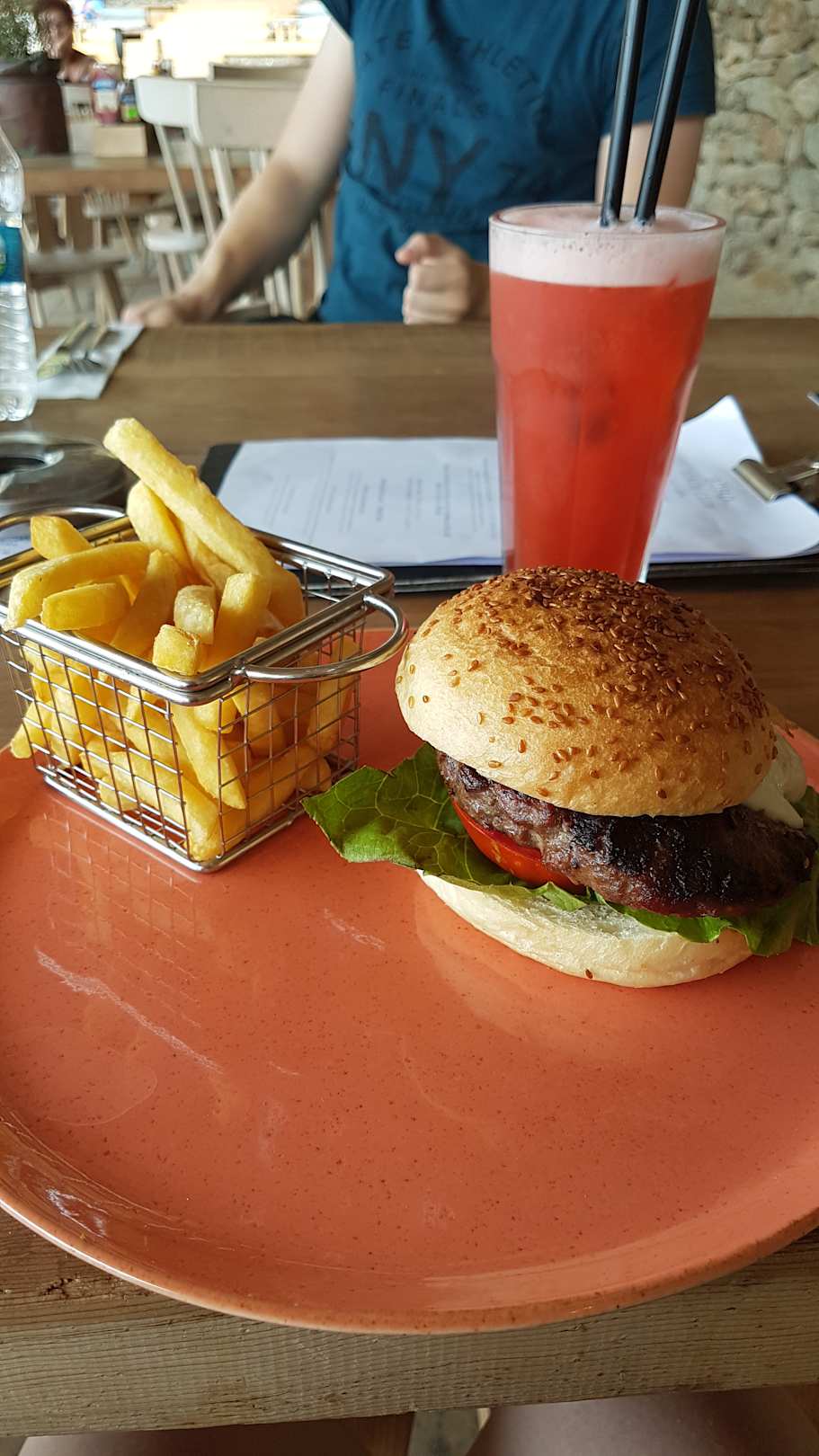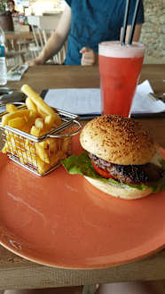 Frisch gegrillte Angus Beef Bürger am Strand