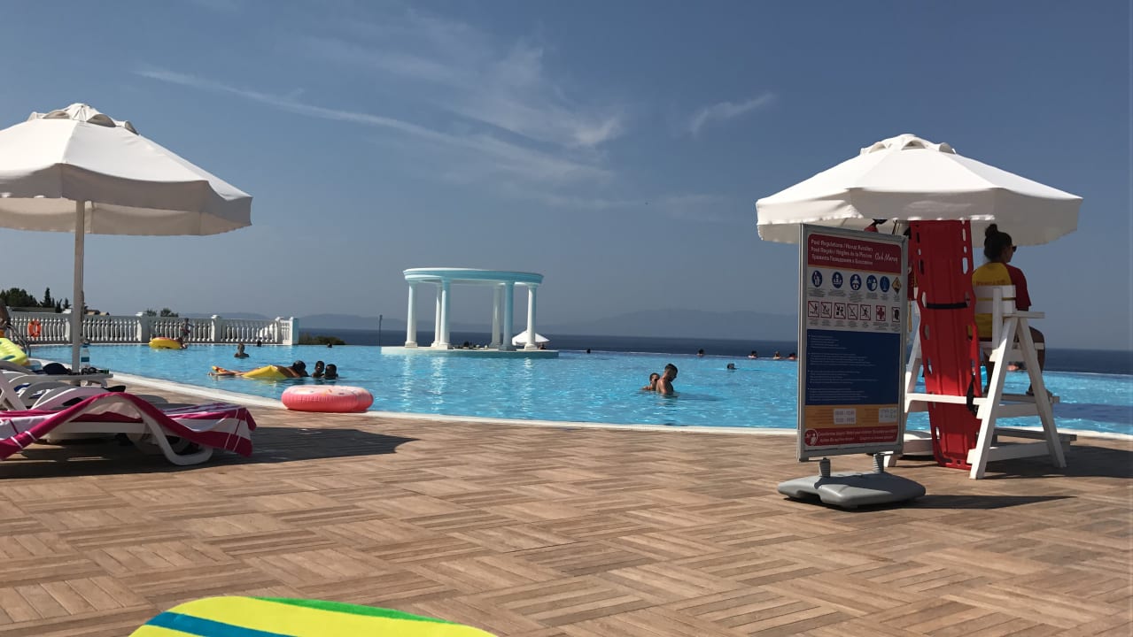 Wunderschöner Pool mit Meeresblick von oben