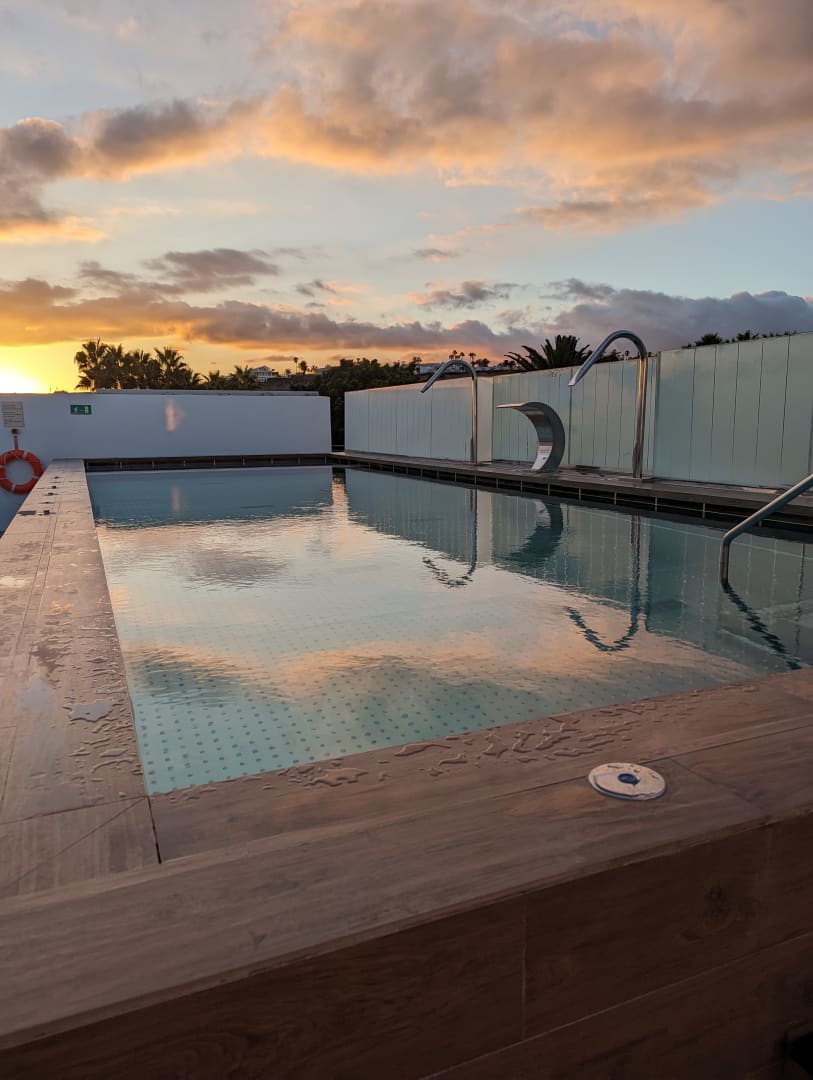 Direkt im Spabereich. Liegen und Sonnenschirme vorhanden.