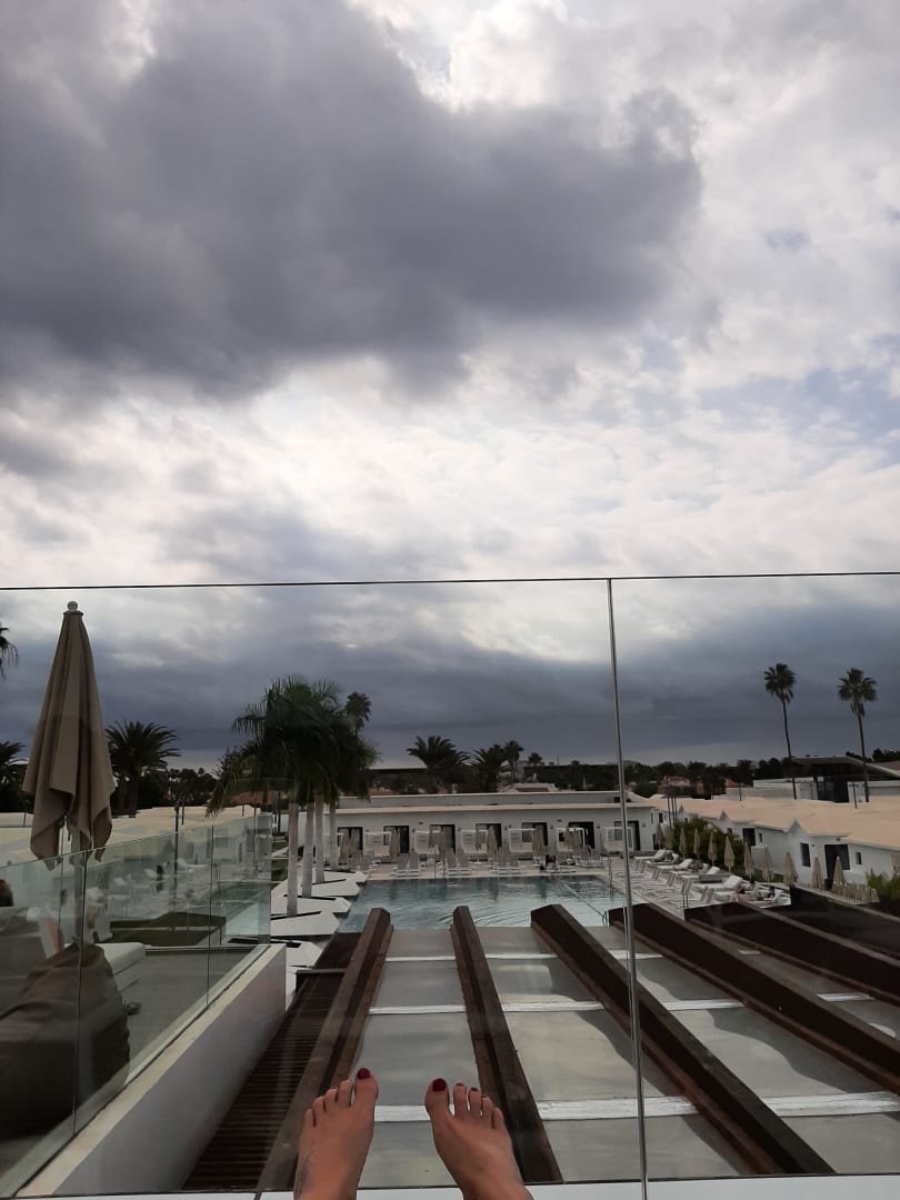 Entspannen am 35° warmen Pool auch bei schlechtem Wetter