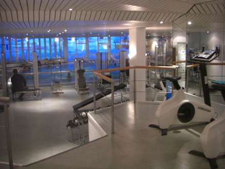 Fitness Raum und im hintergrund der Pool