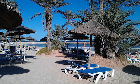 Strand aufgelockert mit Palmen und Schirmen