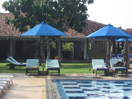 Im Hintergrund die Poolbar