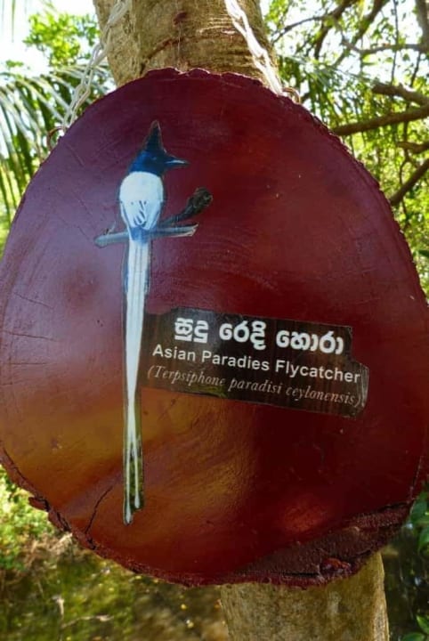 Tabliczki z nazwami żyjących tu ptaków