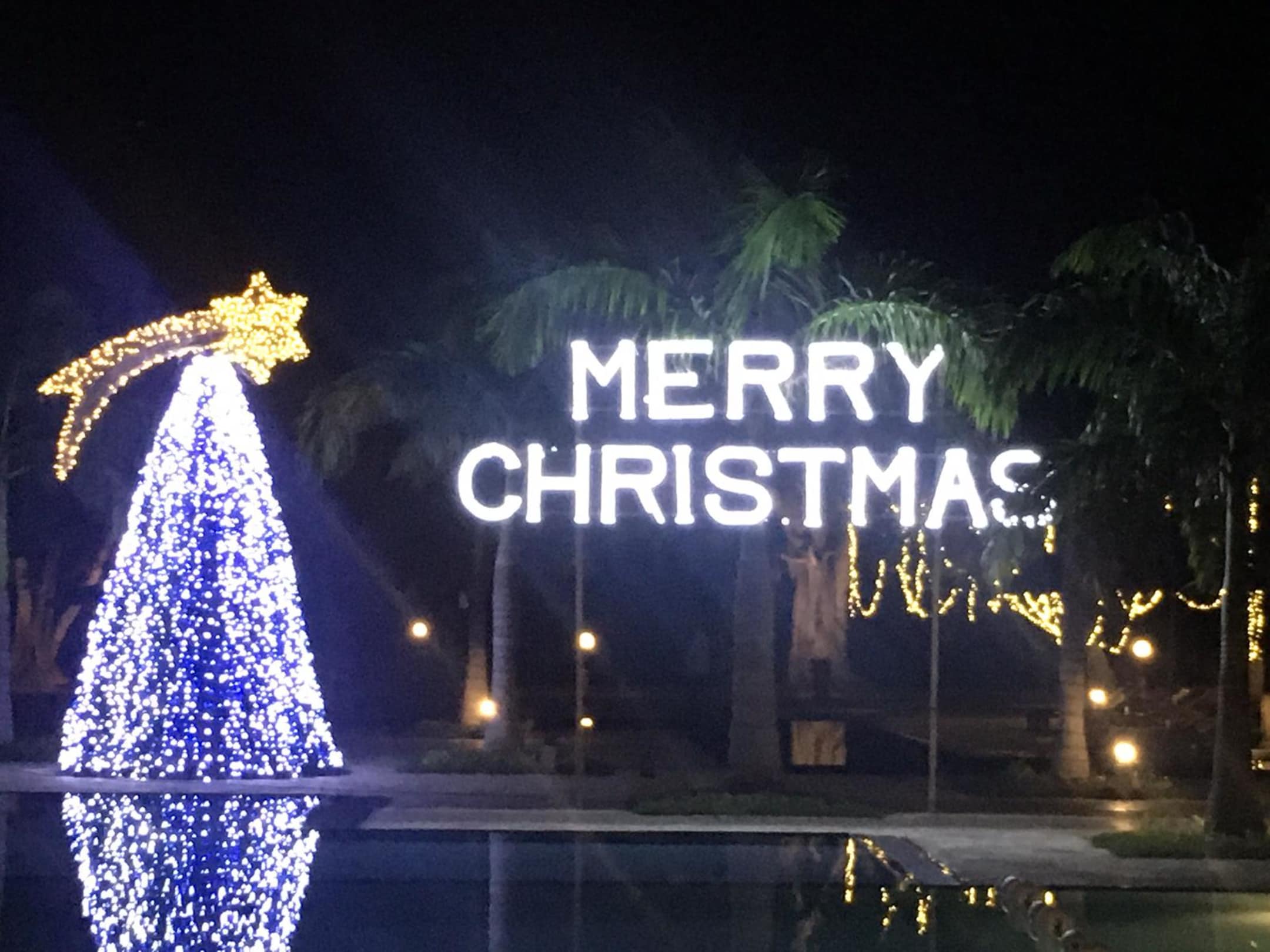 Die sicht auf dem Pool vom Restaurant aus (zur Weihnachtszeit)