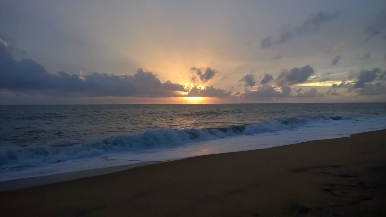 Sonnenuntergang vor dem Hotel am Strand