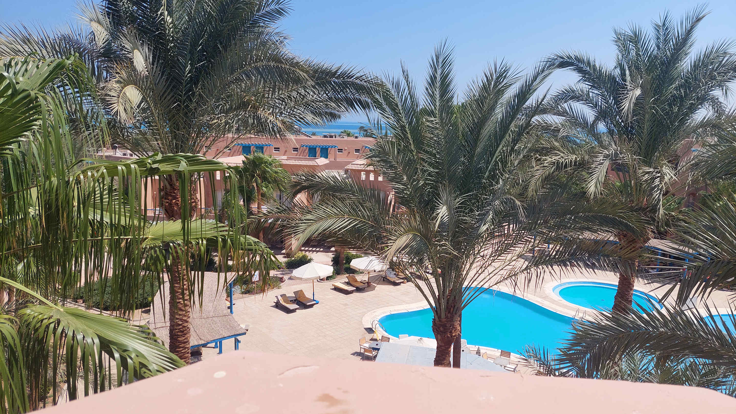 Blick vom Zimmer auf den RuhePool